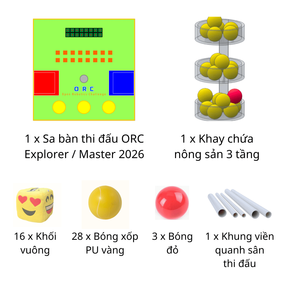 Lưu ý: Kit sân này dùng để thi bảng ORC Explorer. Nếu đội thi tham gia thi bảng ORC Master, đội thi cần chuẩn bị kit sân Explorer này và đài nông sản giá trị cao.