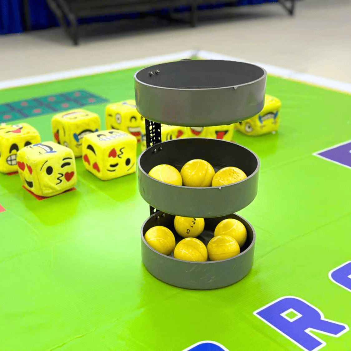 • Khay chứa nông sản 3 tầng (đường kính 20cm) – nơi robot đưa bóng vào để ghi điểm.